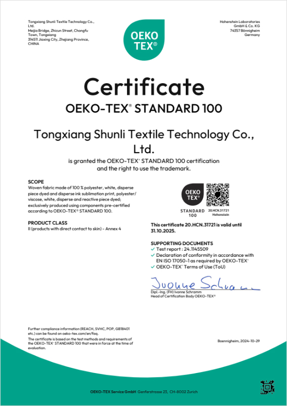 Tongxiang Shunli Textile Technology Co., Ltd.'s polyester-viscose voeringweefsel verbetert de algehele stabiliteit en duurzaamheid van zijn voeringstof door deze verfijnde textieltechnologie. De polyester-viscose-voeringstof kan continu de vlakheid en stabiliteit van de kledingwand behouden onder de staat van langdurige slijtage en frequent wassen, het vermijden van de rimpels en vervormingsproblemen waar traditionele voeringstoffen vatbaar voor zijn. Zelfs na meerdere wasbanden kan deze voeringstof nog steeds zijn oorspronkelijke textuur en uiterlijk behouden, zodat de voering van de kleding altijd plat blijft.